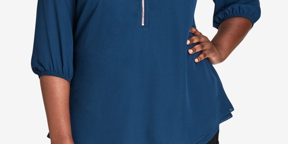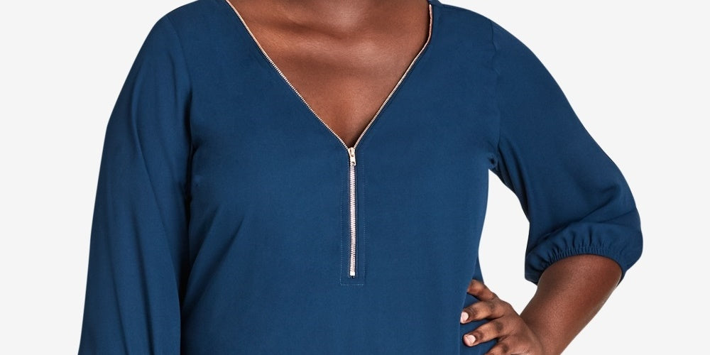 City Chic Women's Plus Sexy Fling Zip Front Top Blue Size 20W