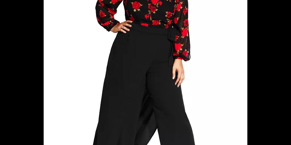City Chic Women's Trendy Plus Wrap Palazzo Pants Black Size 18W