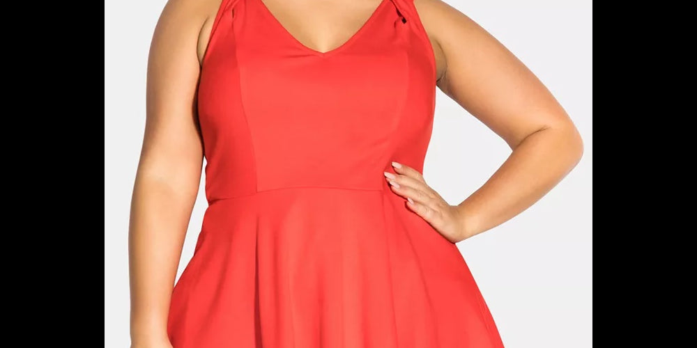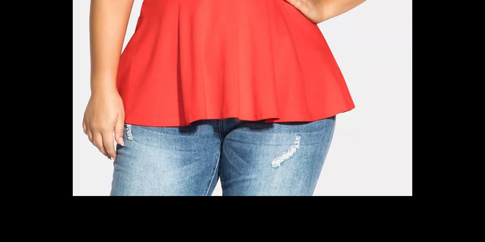 Hits at hip; approx. length: 20-1/5"|Deep V-neck; crossover halter straps|Fitted stretch bodice; peplum silhouette|Please note that this item has International Sizing. Please see US Sizing Conversions noted here that will appear on the merchandise tag when received: 14W= XS, 16W = S, 18W = M, 20W= L, 22W, = XL, 24W = XXL.|ABOUT THE BRAND:|City Chic is a premium Australian fashion brand dedicated to leading a world of curves through bold, sexy, glam & chic fashion. Cut for an hourglass figure to conceal & reveal in all the right places.