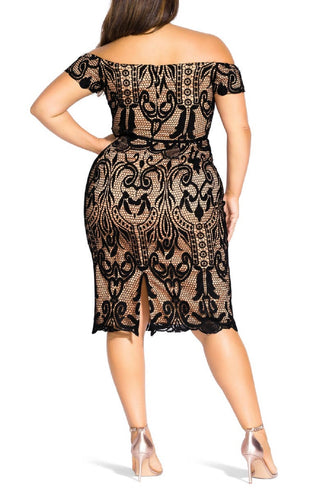 City Chic Women's Lace Off The Shoulder Cocktail Dress Black Size 20W