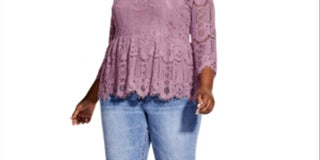 City Chic Women's Trendy Plus Everything Lace Peplum Top Pink Size 18W