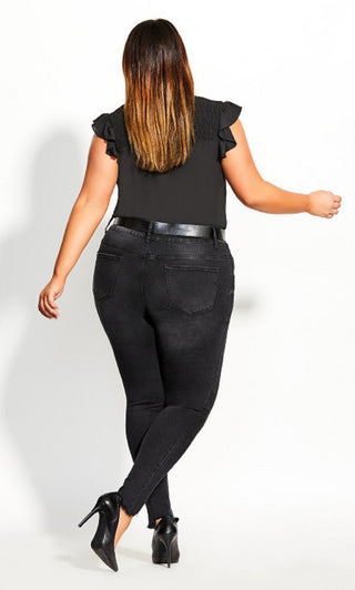 City Chic Women's Trendy Plus Shirred Flirt Top Black Size Petite Small