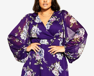 City Chic Women's Wild Floral Mini Dress Purple Size 14W