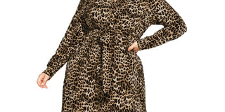 City Chic Women's Trendy Leopard Print Shirtdress Black SizeXS