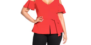 City Chic Women's Trendy Plus Cold Shoulder Peplum Top Orange Size 20W