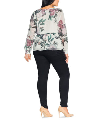 City Chic Women's Textured Floral Peplum Top White Size 14