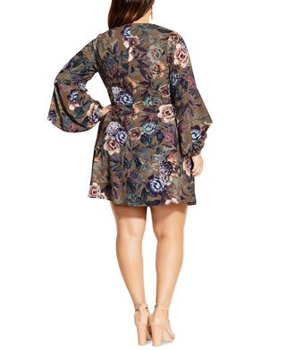 City Chic Women's Trendy Plus Ruffle Sleeve Floral Print Mini Dress Black Size M/18