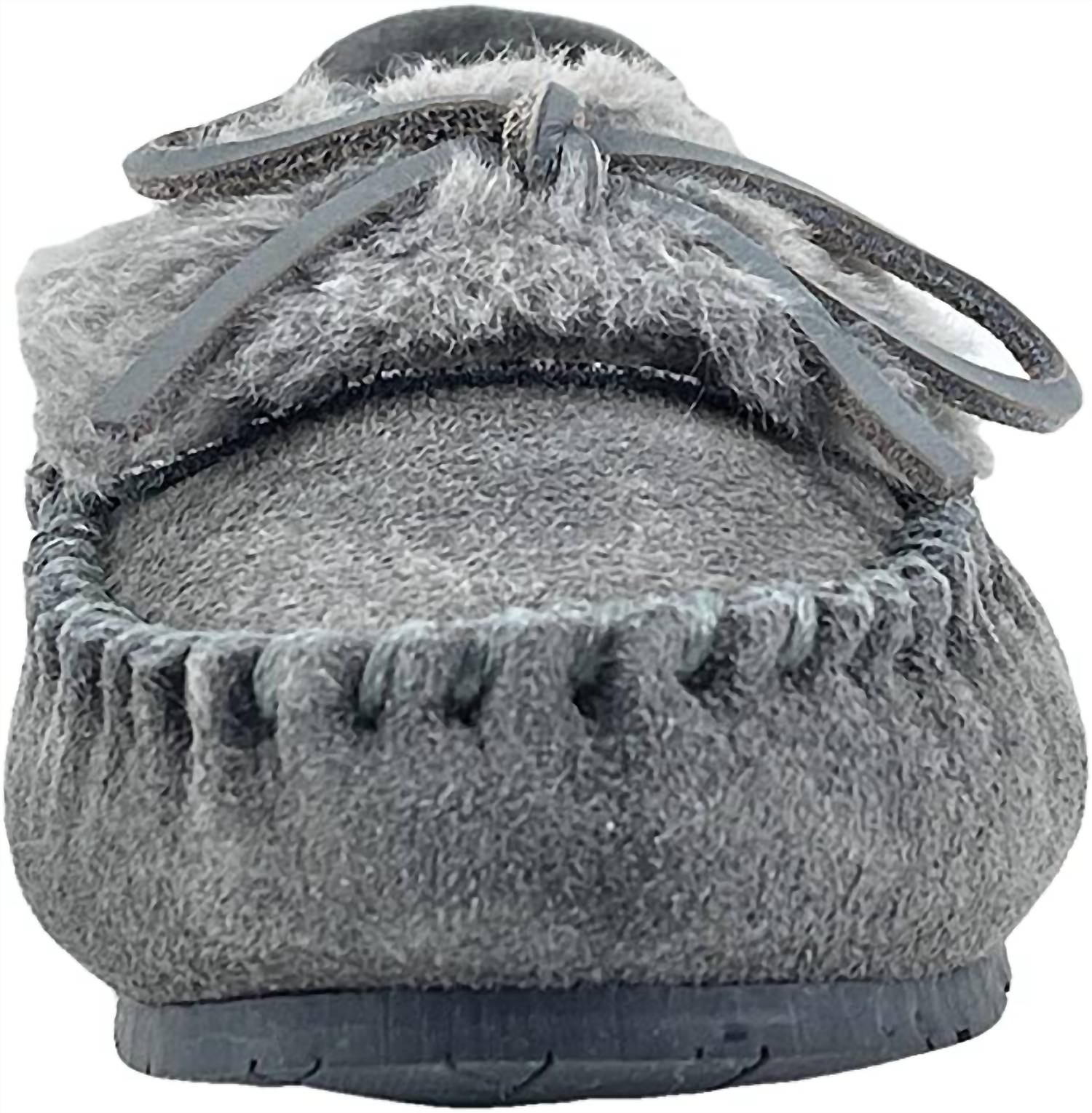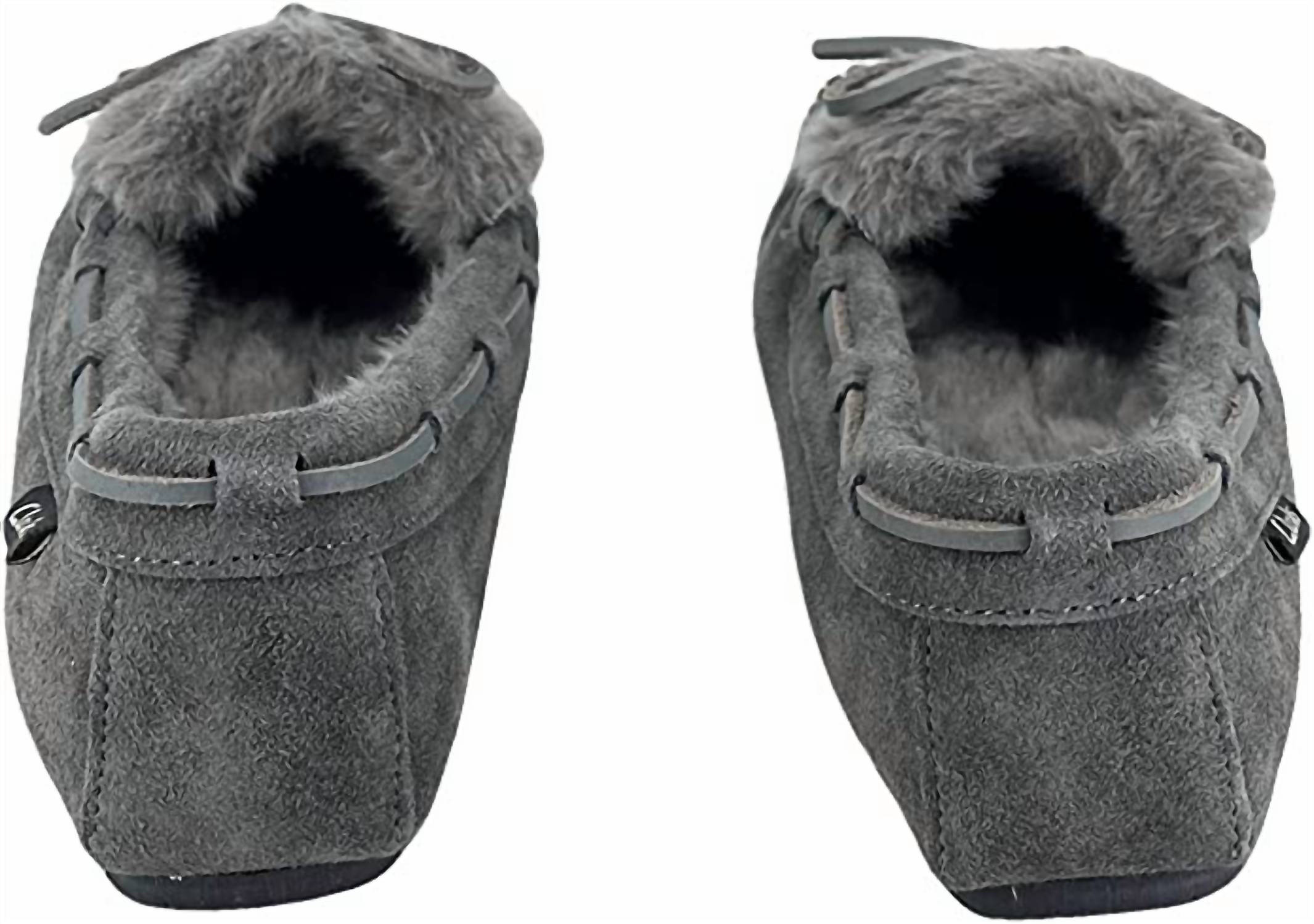 These boho chic moccasins are not only stylish, but they are so comfortable to wear. The perfect casual shoe for running errands around town or lounging around the house. Introducing the Women's Adalyn Mocassin by Clarks, a perfect blend of style and comfort for your winter wardrobe. Crafted from genuine cow suede leather, it features a plush faux fur lining and sock, ensuring a cozy feel. The mocassin's fold-over flap and genuine leather laces provide easy slip-on convenience. Designed with a cushioned comfort insole, this flat-heeled slipper in Grey Fur Vamp color is your go-to choice for all-day wear.