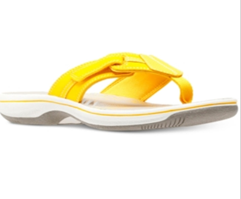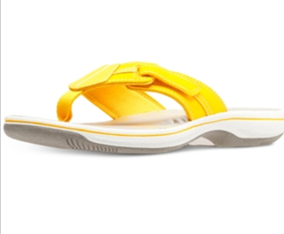 Love every step in the casual sporty look of Clarks's Brinkley Bree flip-flop sandals with adjustable straps and a slight heel that elevates comfortable style.| 1-1/4 heel| 3/4 platform| Round-toe slip-on platform thong flip-flop sandals with adjustable stay-put closure at strap| | Manmade upper; manmade sole| Imported