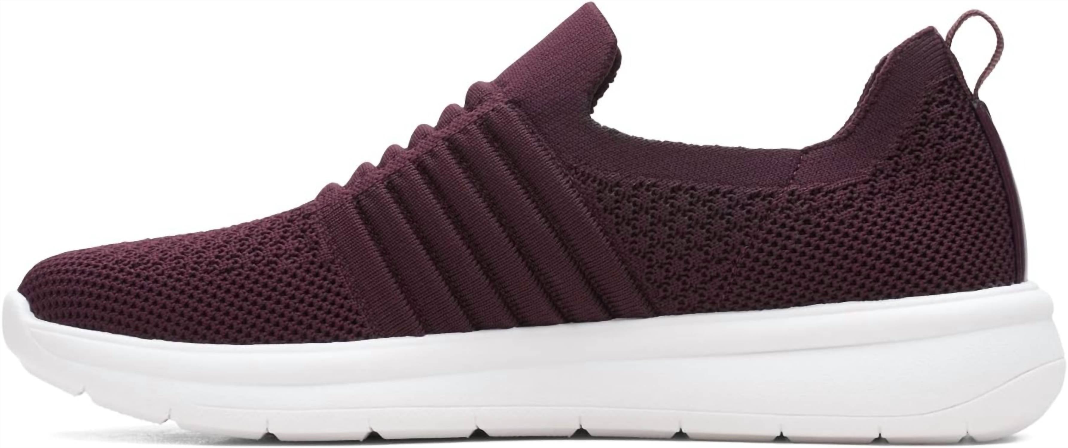 When fashion and function come together seamlessly. The Women's Ezera Walk Sneaker by Clarks is a sophisticated choice, combining a flat heel with a classic round toe for a seamless look. Perfect for spring, these burgundy slip-ons feature a sporty yet elegant design that is ideal for a dinner party and versatile enough for numerous occasions. Designed with a preppy flair, they cater to an adult female audience searching for both style and comfort. The manufacturer ID for this sleek model is 26163153.