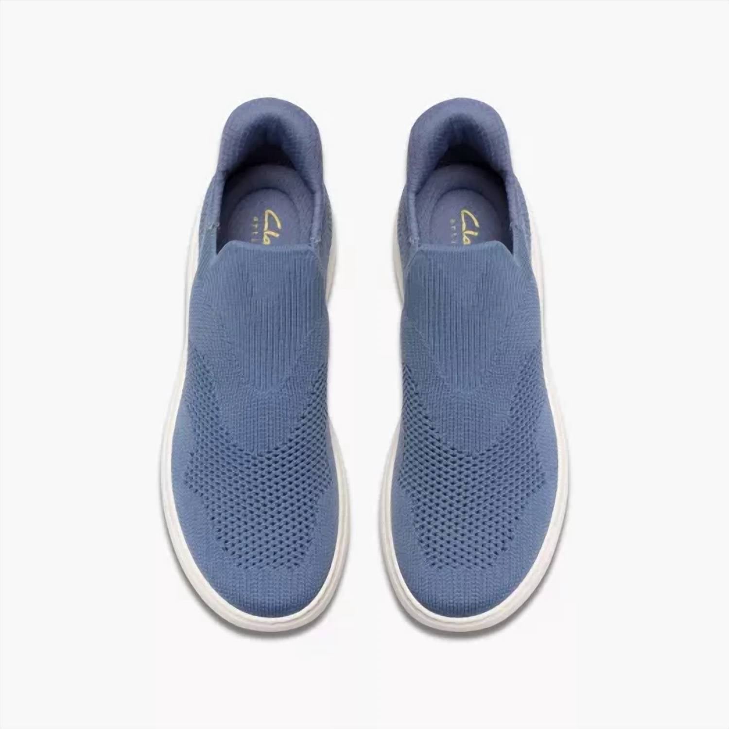 Get your daily steps in with these adorable sneakers. Introducing the Women's Nalle Step Sneakers by Clarks, a minimalist choice for travel and summer occasions. Featuring a round toe and flat heel style with a heel height of under 1 inch, these sneakers offer comfort and style in a navy knit design. Perfect for women seeking versatile footwear. Ideal for those who embrace a minimalist trend in their wardrobe.