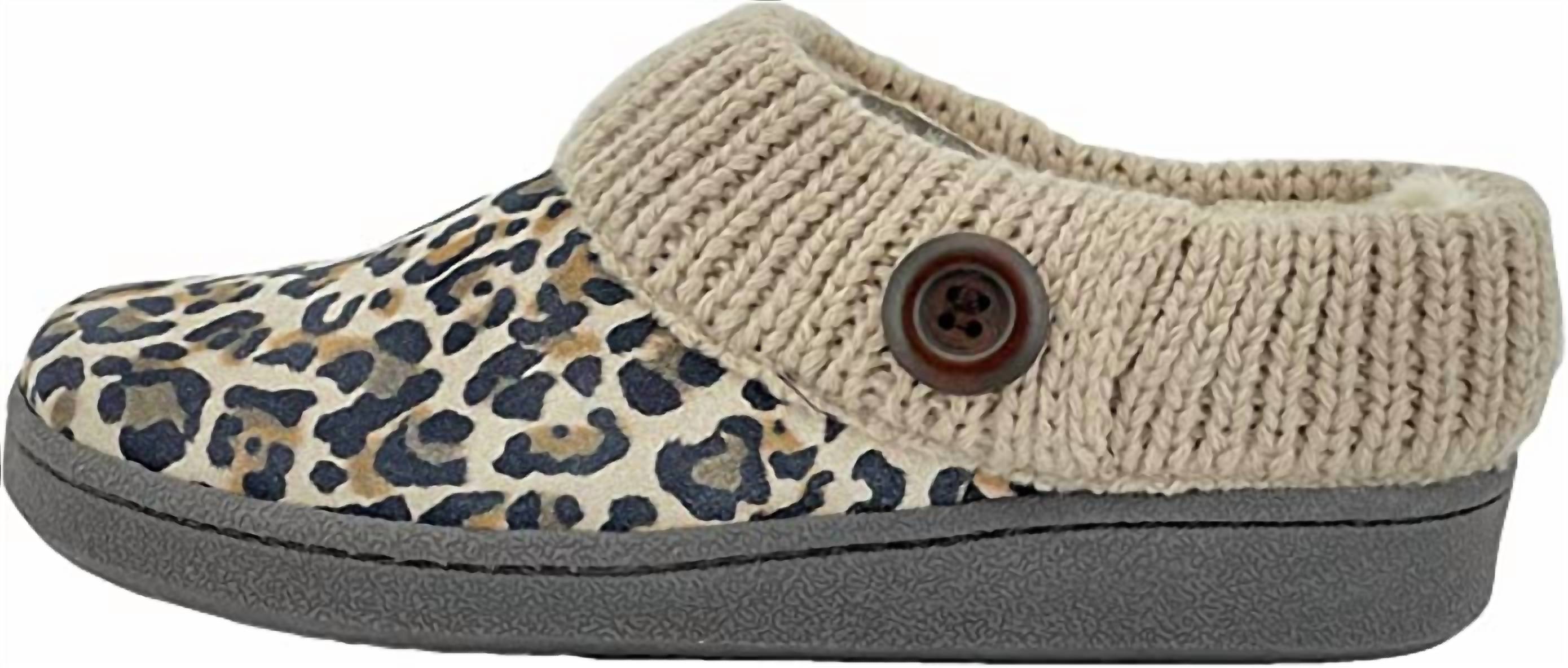 Pair these with a cozy robe and we call this loungewear luxe. Slip into unrivaled comfort with Clarks Women's Sweater Collar Scuff Slippers, crafted for the colder months. These slippers, available in Tan Brown Leopard, feature a plush fur lining to keep your feet cozy and warm. Constructed from high-quality leather, they boast a secure fit and round toe shape, perfect for both indoor and outdoor use.