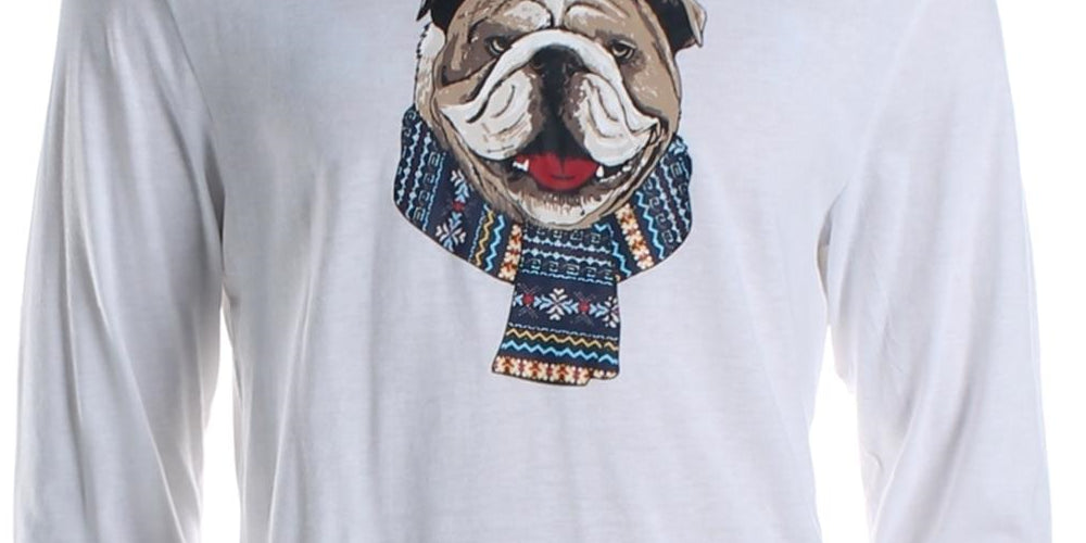 Club Room Men's Bulldog Scarf Cotton Blend Graphic T-Shirt White Size Large