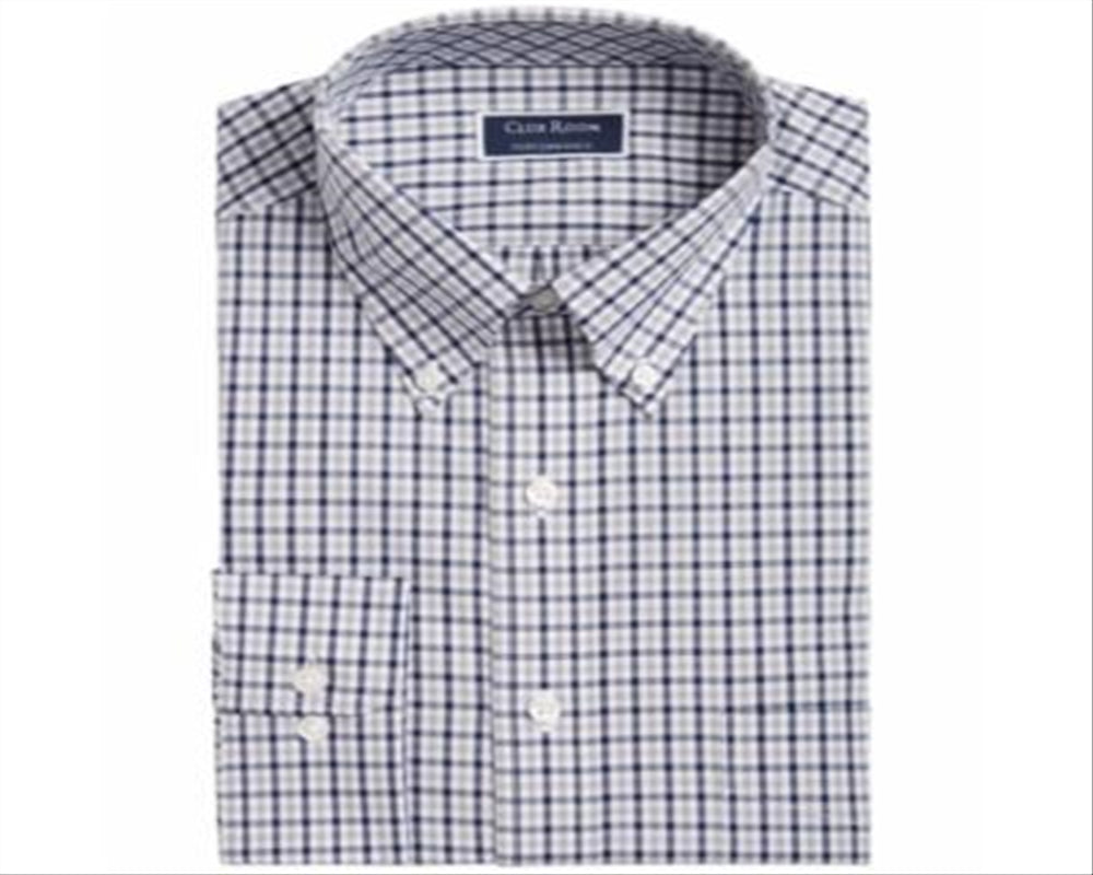 Club Room Men's Classic/Regular Fit Gingham Check Performance Dress Shirt Gray Size 17X34-35