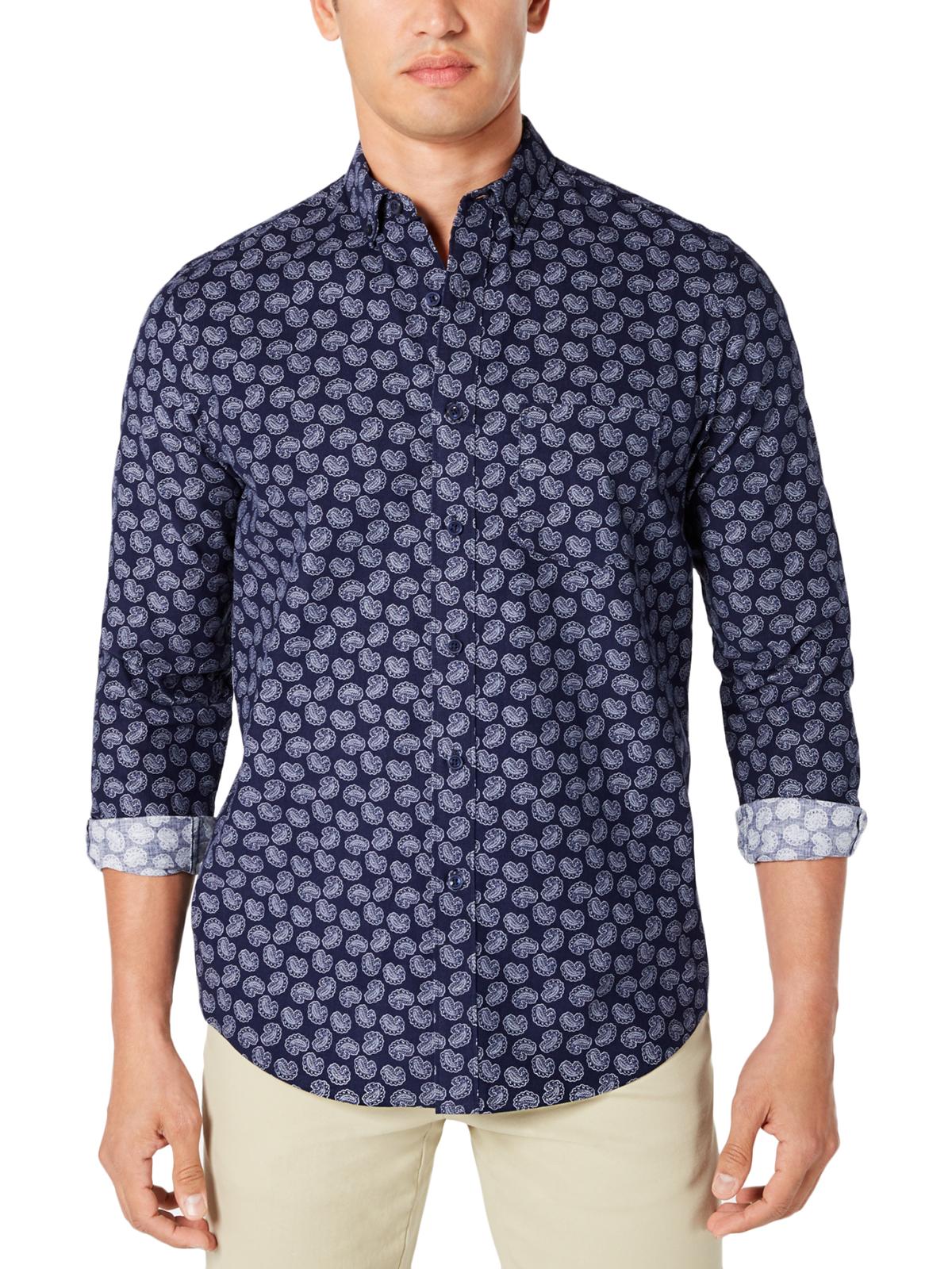 Club Room Men's Corduroy Paisley Button Down Shirt Blue Size Medium