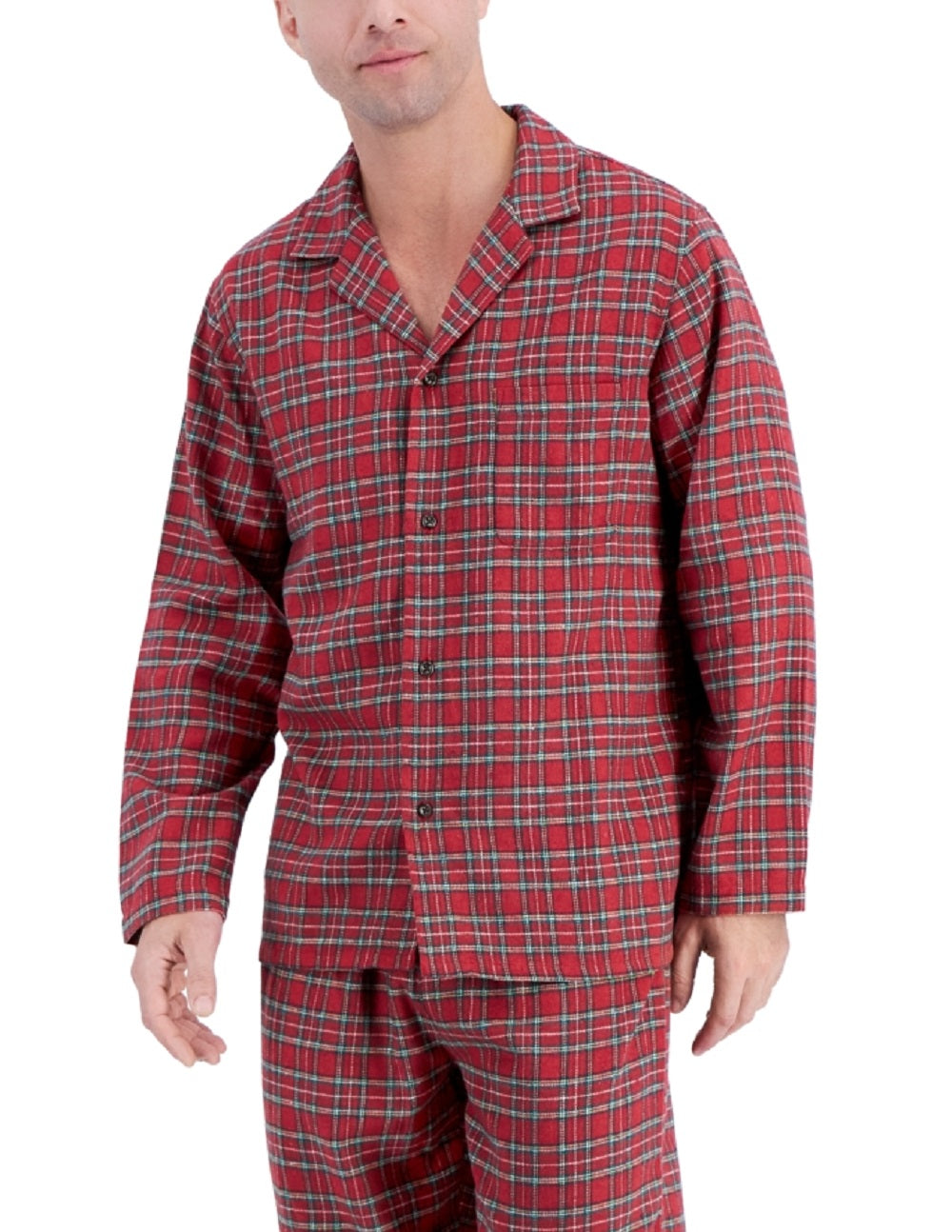 A simple heathered finish highlights the timeless look of this Club Room pajama set while soft flannel delivers a comfortable feel.| Imported| Pajama set includes one top and one bottom| | Top; button closure; left chest pocket; long sleeves; notch lapel| | Size & Fit