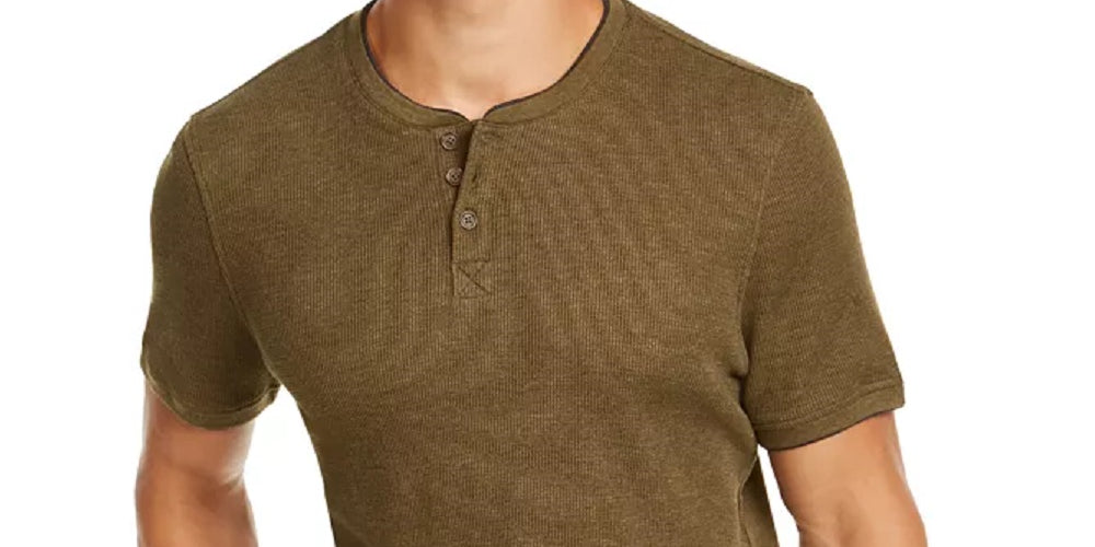 Club Room Men's Henley Layered Look Thermal Knit Shirt Green Size Large