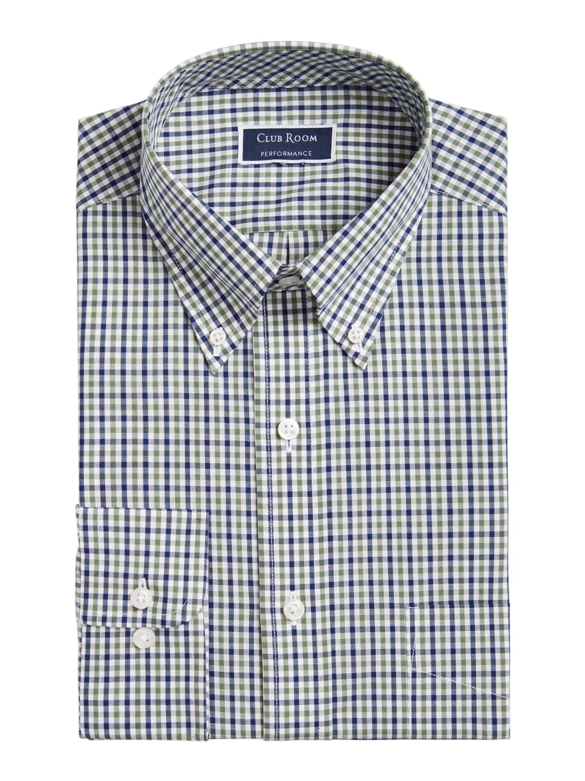 Club Room Men's Plaid Long Sleeves Dress Shirt Olive/Navy Size XL 17
