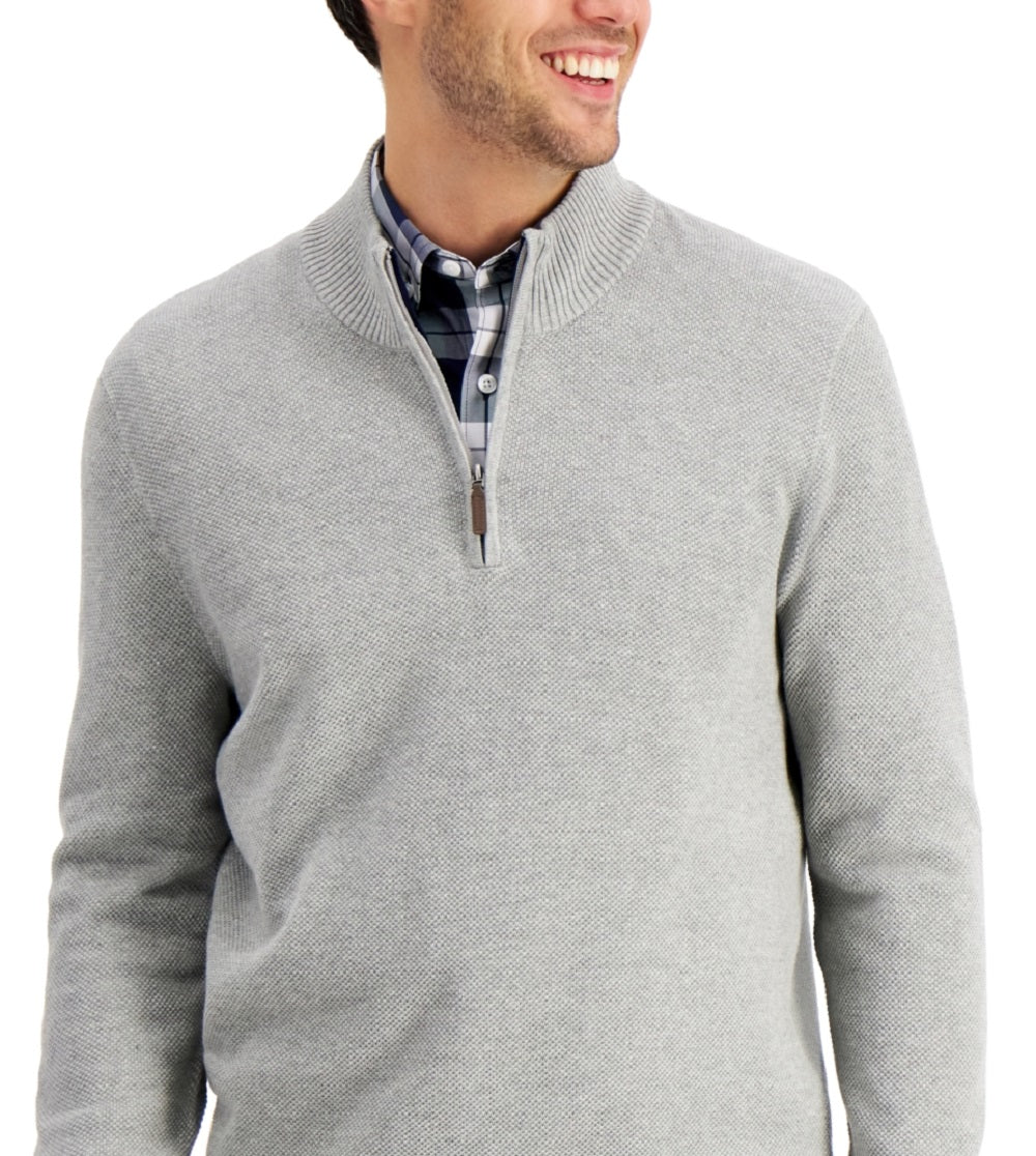 Club Room Men's Quarter Zip Textured Cotton Sweater Gray Size Medium