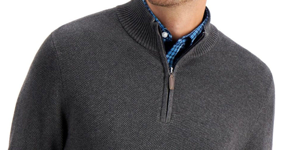 A classic layering piece| this all-cotton sweater from Club Room is finished with a quarter-zip closure.|Stand collar with quarter-zip closure Size & Fit|Standard fit Materials & Care|Machine washable|Cotton; trim; faux leather