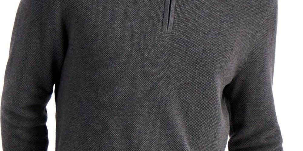 Club Room Men's Quarter Zip Textured Cotton Sweater Grey Size X-Large