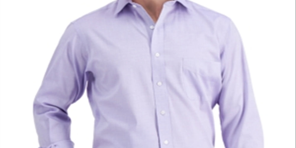 Club Room Men's Regular Fit Cotton Spread Collar Pinpoint Dress Shirt Purple Size M