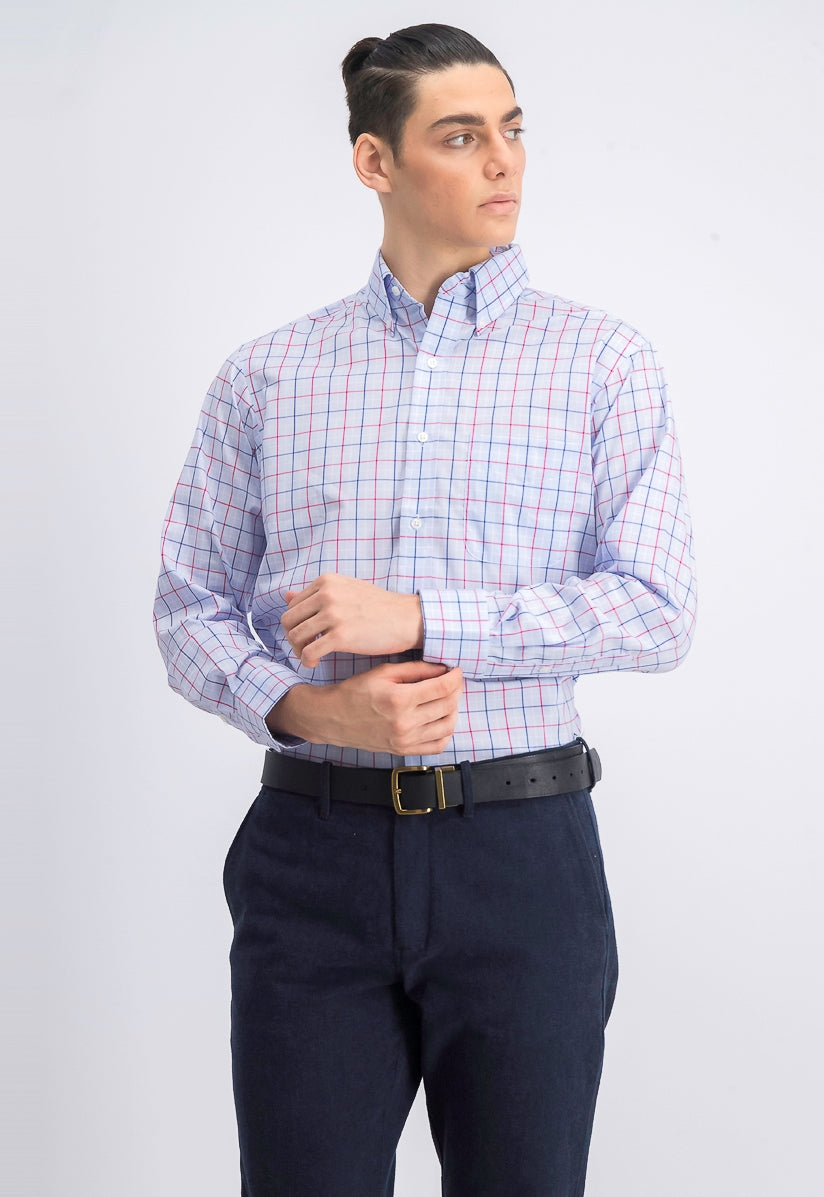 Stretch fabric for a full range of movement|Pocket at left chest|Stretch button-down comfort collar|Stretch fabric for a full range of movement