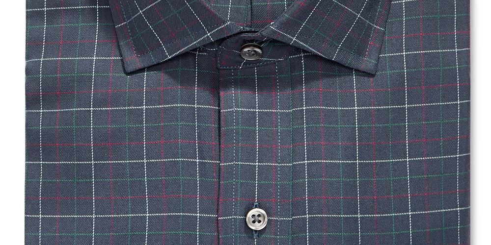 Club Room Men's Regular Fit Stretch Twill Multi Tattersall Dress Shirt Blue Size 34X35