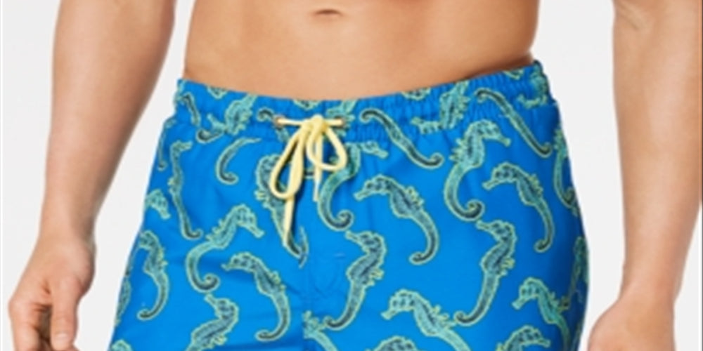 Club Room Men's Seahorse Quick Dry Swim Trunks Blue Size Large