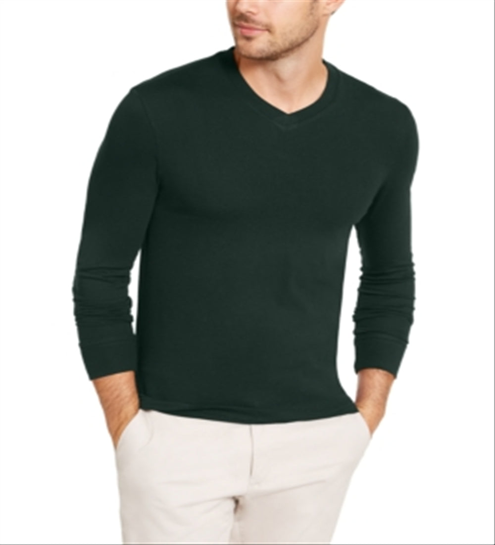 Club Room Men's Solid Long Sleeve V Neck T-Shirt Green Size Large