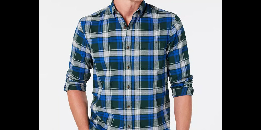 Club Room Men's Stretch Brushed Cotton Plaid Flannel Shirt Blue/Red Size Small