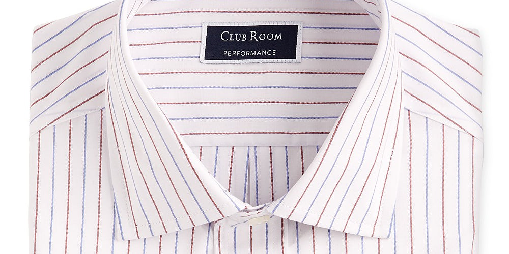 Club Room Men's Stretch Wrinkle-Resistant Pinstripe Shirt White Size 16x34-35