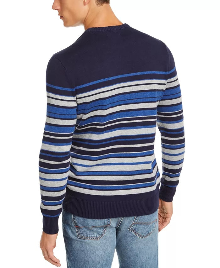 Club Room Men's Stripe Cotton Sweater Blue Size XX Large