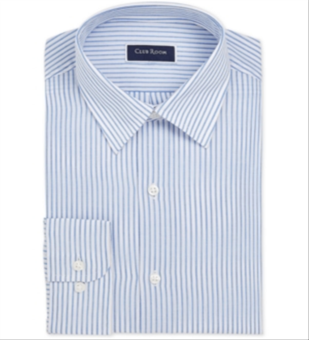 Clubroom Men's Striped Collared Dress Shirt Blue Size 16.5X32-33