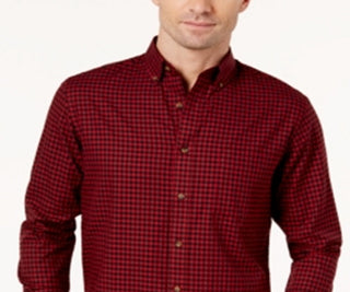 Club Room Men's Checkered Printed Dress Shirt Red Size Medium