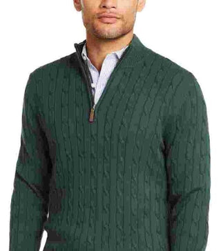 Club Room Men's Pima Cable Quarter Zip Sweater Green Size Large