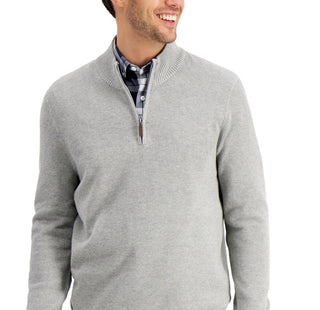 Club Room Men's Quarter Zip Textured Cotton Sweater Gray Size Size Large