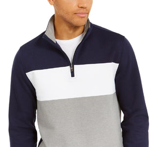 Club Room Men's Colorblocked Quarter Zip Fleece Sweatshirt Blue Size Large