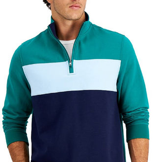 Club Room Men's Colorblocked Quarter Zip Fleece Sweatshirt Green Size XX-Large