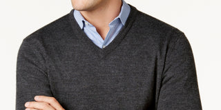 Club Room Men's Solid V Neck Merino Wool Blend Sweater Gray Size Large
