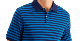 Club Room Men's Interlock Striped Classic Fit Stretch Polo T-Shirt Blue Size Small