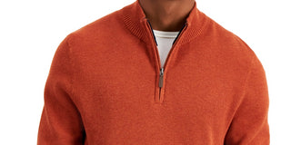 Club Room Men's Quarter Zip Textured Cotton Sweater Orange Size Medium