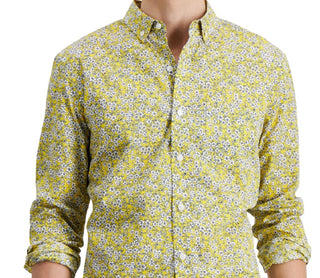 Club Room Men's Floral Print Shirt Yellow Size Medium