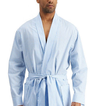 Club Room Men's Medium Gingham Woven Robe Blue Size Large