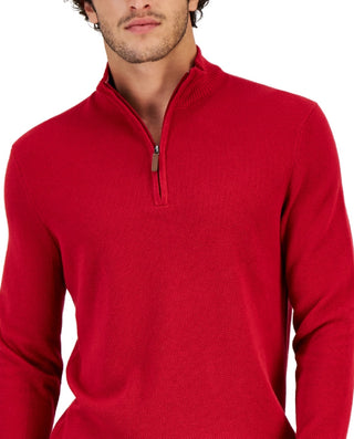 Club Room Men's Quarter Zip Textured Cotton Sweater Red Size Large