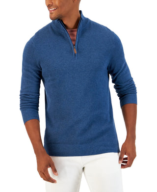 Club Room Men's Quarter Zip Textured Cotton Sweater Blue Size Large