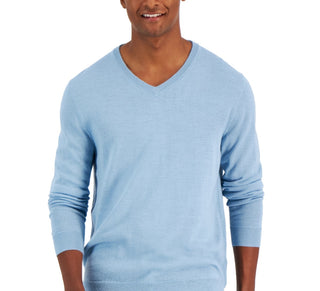 Club Room Men's Solid V Neck Merino Wool Blend Sweater Blue Size X-Large