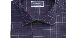 Club Room Men's Classic Regular Fit Stretch Twill Houndstooth Plaid Dress Shirt Purple Size 18x36-37
