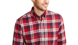 Club Room Men's Maxwell Tartan Plaid Shirt Red Size Medium