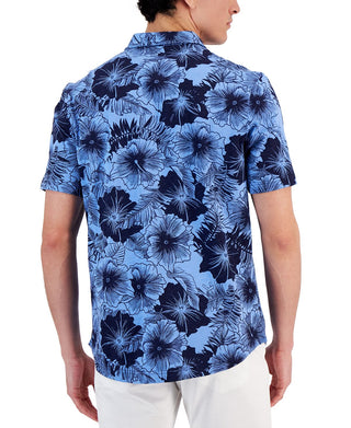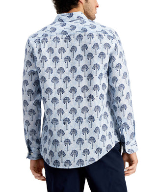 Club Room Men's Regular Fit Palm Tree Print Linen Shirt Blue Size XX-Large